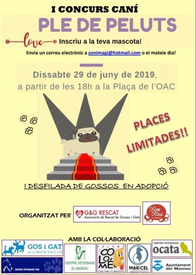 Us convidem a participar en el «I Concurs Caní Ple de Peluts» on podrem passar una estona divertida amb els nostres petits!! Us esperem el dissabte 29 de Juny a la Plaça de l’OAC del Masnou a les 18:00h!!! No faltis!!