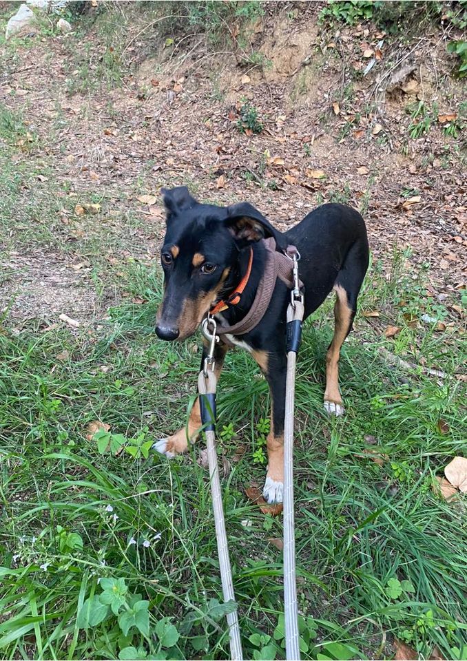 Este bellezón tiene 6 meses y es un cachorro muy bueno y juguetón, muy sociable con personas y otros perros y le encanta salir de paseo. Necesita un familia que lo quiera para siempre.