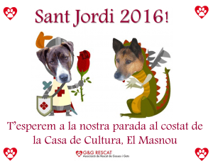 SANT JORDI 2016 ya está aquí! Este sábado , G&G RESCAT participará en la feria de Sant Jordi de El Masnou con el objetivo de dar a conocer a la Asociación y hablaros sobre nuestros peludos en adopción. Además, en nuestra parada podréis encontrar rosas preciosa, libros relacionados con el mundo canino muy interesantes y rosas … More Sant Jordi ya está aquí!