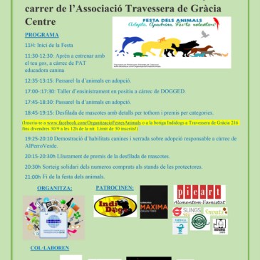 Mañana Sábado 1 de octubre G&G RESCAT estará en la I Festa dela animals que se celebra en Gràcia (Barcelona). Aquí os dejamos la agenda del dia! Esperamos que tengais un ratito para pasar por la parada y saludarnos.